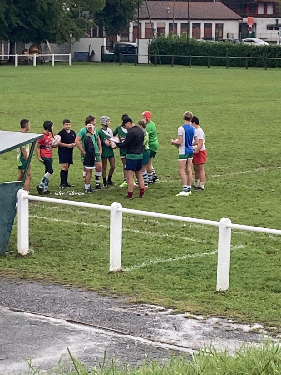 Le soir venu, tout était prêt ! J’ai bouclé mes valisesEt j’ai pris la route, quittant mon cher Pays-Basque…Je prends la route, direction Odos, près de Tarbes. La lune est déjà haute chez moi, mais je ne la verrai pas… Dommage, car c’est une nuit de pleine lune !Aucune importance finalement, puisque la Lune est partout. Généreuse qu’elle est, offrant sa lumière à tout le monde. Il fait nuit lorsque j’arrive à destination. Je dois m’endormir sans tarder, le jour arrivera vite !Ça y est, le réveil a sonné, il est temps d’y aller ! Aujourd’hui, je vais mener mon enquête, je vais faire mon petit curieux…Oh que le réveil est difficile ! Je m’extirpe de ma couchette péniblement…Un brin de toilette, quelques étirements, un copieux petit déjeuner, et me voilà parti. Le départ est un peu laborieux…Le soleil se lève, éclaboussant les champs de maïs de sa lumière…Un temps splendide, qui annonce une merveilleuse journée ! Je vois ça comme un cygne ( ou comme un signe… Excusez moi, j’ai toujours des lacunes en orthographe… )Je ne prends pas ma voiture cette fois, je choisi la discrétion, profitant de me ressourcer au calme…Ma toilette est faite, mais je ne suis pas contre prendre un bain de lumière…Les arbres ont vraiment le pouvoir de m’apaiser, que du bonheur !Je ne suis pas encore chaud, ma progression est lente. Ce n’est pas grave, je suis déjà plus rapide que ce promeneur insouciant, pas très causant …Un peu plus loin, je rencontre un autre promeneur. Celui-ci est plus loquace. Je lui explique mon projet : trouver l’endroit où s’entraînent les bleus, ce lieu gardé secret. J’ai de la chance ! Les quelques indices que j’avais récolté durant les semaines précédentes m’ont guidé jusqu’ici, et ce personnage en sait suffisamment pour me renseigner correctement…Après une bonne heure de marche, j’aperçois au loin le fameux terrain de jeu…A vu d’œil, il semble tout près, mais ma vision me trompe, j’ai encore de quoi marcher pour atteindre mon but ! Je fais une petite pause, histoire de reprendre mon souffle…Très bel endroit, mais j’ai une drôle de sensation…Je ressens une présence, comme si quelqu’un me guette…Soudain, j’entends un bruit de feuilles et de branches qui remuent ! Un inconnu me fonce dessus !Il est impressionnant ! Je me fige sur place, pétrifié par la peur !Il me passe juste à côté, sans s’arrêter ! Je ne comprends pas ce qu’il veut…Un second individu le suit, mais prend une autre direction juste avant d’arriver à mon niveau !Le premier, après m’avoir frôlé, se précipite vers un grand chêne…C’est un rapide ! Il grimpe aussi vite qu’il court !Son compère monte sur un autre chêne, tout aussi rapide…Le premier à disparu au milieu des branches les plus hautes. Celui-ci se fige…Il me regarde en poussant de petits cris aigus. L’instant est bref. Aussi soudainement qu’il s’est arrêté, il repart, bondissant d’une branche à l’autre, puis d’un arbre à l’autre, jusqu’à disparaître…Etourdi par cette rencontre plus que surprenante, ne comprenant pas ce qui vient de m’arriver. je m’affale sur un banc, tout près de là…Mon cœur bat encore la chamade lorsque surgit devant moi un certain Jimmy. II m’explique que j’ai dépassé les limites du périmètre de sécurité qui protège le terrain des Bleus.Jimmy a été plus que sympathique avec moi! Après que Tic et Tac, les gardiens de ce temple, aient donné l’alerte, il est venu faire barrage. Lorsqu’il a su que je voulais simplement observer les joueurs et en interroger quelques uns, il m’a laissé passer…L’instant est magique, me voilà arrivé sur le lieu sacré !Et voilà déjà les instruments de tortures, ceux dont se servent les professionnels du rugby pour s’entraîner…De la vapeur s’en échappe, probablement la chaleur émanant des sportifs…Les voilà ! Enfin, j’aperçois les légendes !Alors que j’observe les joueurs en pleine action, une commère vient cracher son venin à mes oreilles…« Les Bleus n’ont aucune chance, ils vont se faire plumer par leurs adversaires ! » me dit cette garce, d’un ton méprisant et aigri…« Fais pas attention à cette mégère ! Viens plutôt avec moi, je vais te présenter notre équipe ! » me glisse Kanesh, l’ostéopathe(☆) officiel du groupe .☆(os, thé aux pâtes),menu équilibré pour vaincre l’adversaire. J’obéis, je me sens privilégié…L’entraînement est intense, ça ne plaisante pas !De véritables machines de guerre, impressionnant !Sur le bord du terrain, je reconnais Antoine Dupont, en conversation avec un de ces coéquipiers…Il accepte gentiment de répondre à mes questions…Même s’il est très déçu de ne pouvoir participer au prochain match, il se dit très confiant pour la suite du tournoi…Le XV de France ira loin dans cette coupe du monde, d’autant plus qu’il joue à domicile ! Merci Mr Dupont pour le temps que vous m’avez accordé !« Nous n’irons pas juste loin, nous gagnerons ! »
